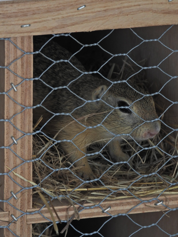 Druhá skupinka v letošním roce byla dnes dovezena z blízké Miroslavi. Jihomoravské kolonii syslů u Miroslavi se dlouhodobě velmi daří, a je tak možné část jedinců odebrat. Díky geneticky pestrému původu zakládajících jedinců se tak zvýší šance na vytvoření stabilní životaschopné populace.